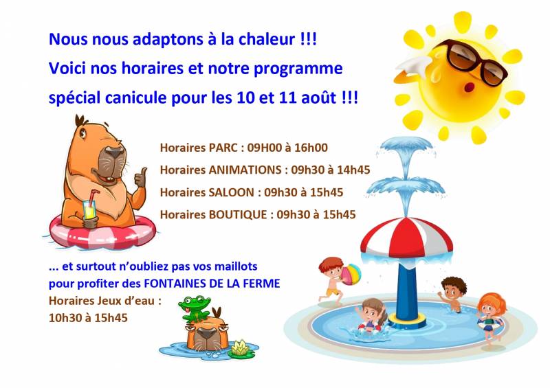 Samedi et dimanche, en raison des très fortes températures attendues, nous nous adaptons avec des horaires et un programme spécial canicule.
