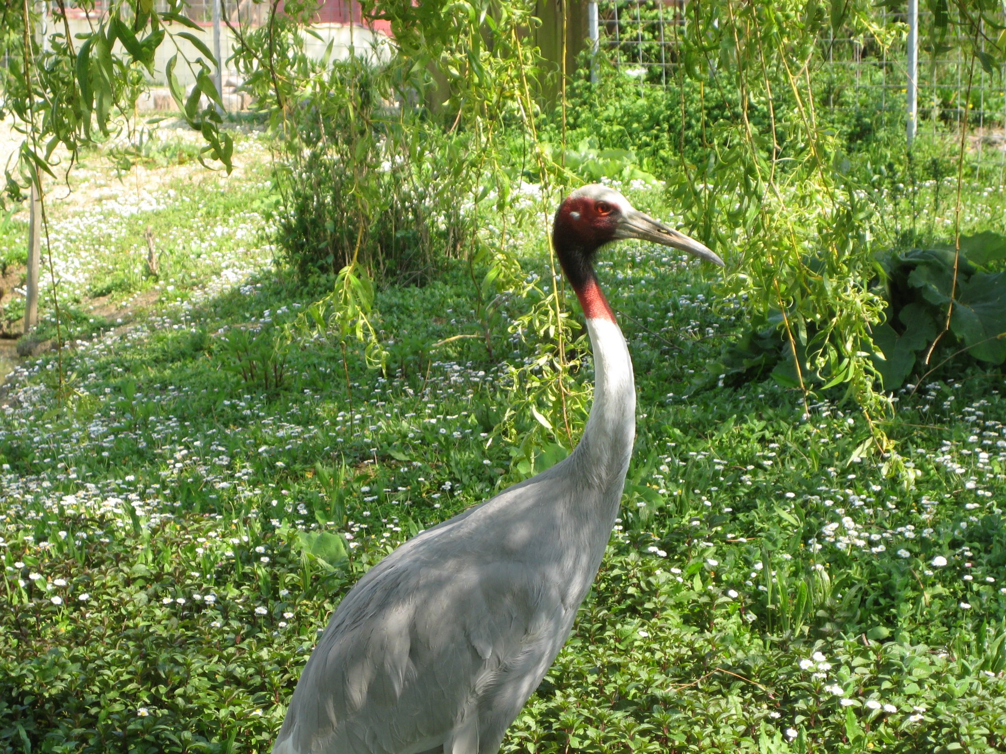 De couleur gris perle avec une calotte grise sur le sommet du crâne, la grue antigone a le reste de la tête et l'amorce du cou rouges.