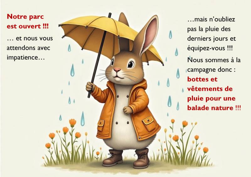 Mais n'oubliez pas la pluie des derniers jours, et pensez à vous équiper : bottes, vêtements de pluie, pour une balade nature en toute sérénité.